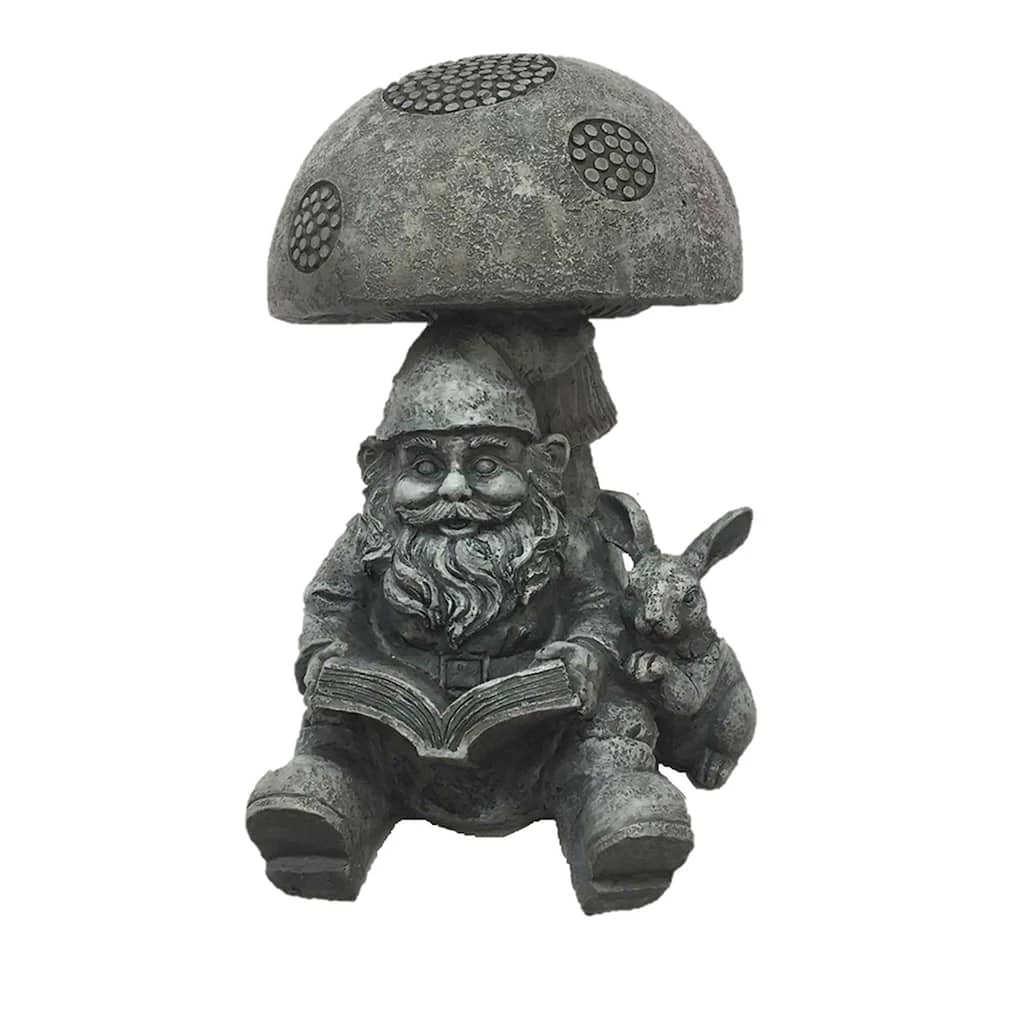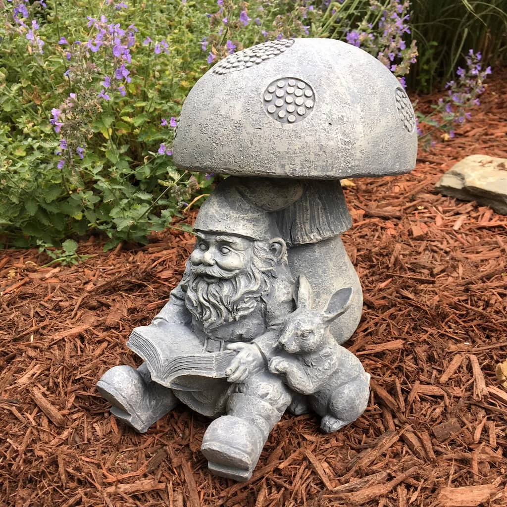 This happy gnome is taking a well earned break from the sun with two of his favorite companions: a book and a bunny! Delightfully detailed and crafted from long lasting resin, this wonderful figurine will provide many seasons of enjoyment.
