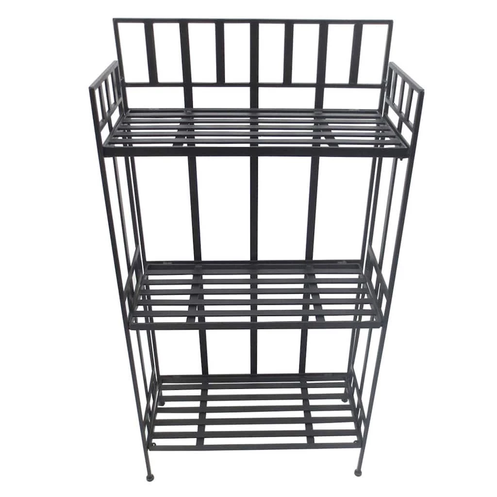 Sturdy and beautiful, this black three tier shelf is perfect for creating plant displays. Add your favorite seasonal potted plants to this iron shelf to complete the look.